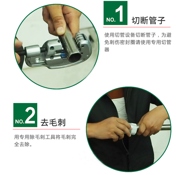 注意:在进行切面处理的作业时,请将切面朝下,以使钢屑不会进入配管内部。